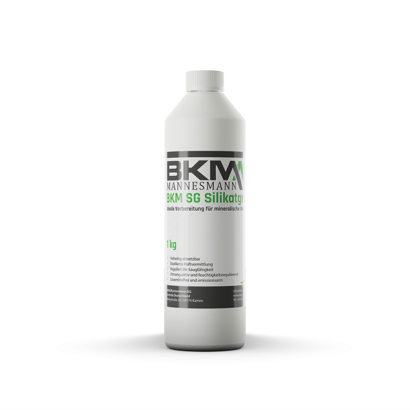 A BKM SG Silikatgrund egy innovatív alapozó-, adalék- és hígítószer, amely tiszta, folyékony kálium-szilikát alapon készült, minimális szerves adalékokkal optimalizálva. Kifejezetten úgy lett kifejlesztve, hogy szabályozza az erősen nedvszívó ásványi alapfelületek nedvszívó képességét, és többek között ideális a BKM Prémium Szilikátfestékkel való használathoz. A BKM SG Silikatgrund megszilárdítja a homokos, porózus felületeket, és javítja a tapadást száraz és nedvesített alapokon a vakolatok és az elővakolatok számára.